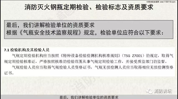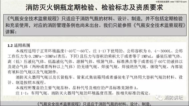 本視頻對(duì)消防滅火類鋼瓶的報(bào)廢年限、定期檢驗(yàn)周期、檢驗(yàn)標(biāo)志及資質(zhì)要求等,進(jìn)行詳細(xì)講述。