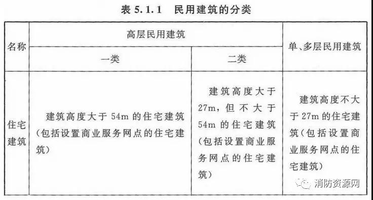 民用建筑的分類應(yīng)符合表5.1.1的規(guī)定。(5.1.1)